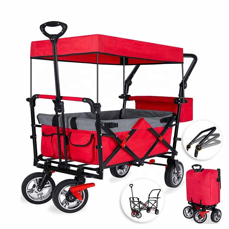 New Design Outdoor Camping Foldable Trolley Wagon Cart Adjustable Handle Folding Wagon Cart With Removable Canopy
